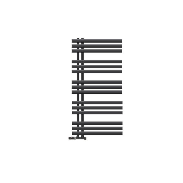 LuxeBath Badheizkörper Iron EM 600x1200 mm Anthrazit Mittelanschluss mit Anschlussgarnitur und Thermostat Eck Wand, Design Heizkörper Bad Heizung Handtuchwärmer Handtuchtrockner Handtuchheizkörper