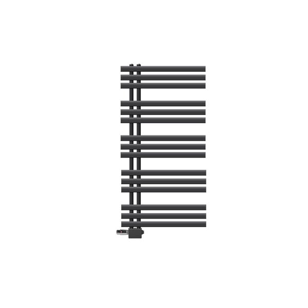 LuxeBath Badheizkörper Iron EM 600x1200mm Anthrazit Mittelanschluss Anschlussgarnitur Thermostat Universal Eck- und Durchgangsform, Design Heizkörper Handtuchwärmer Handtuchtrockner Handtuchheizkörper