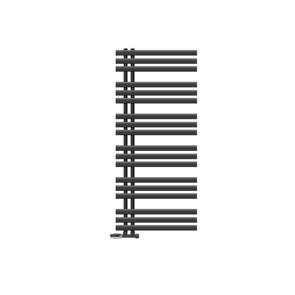 LuxeBath Badheizkörper Iron EM 600x1400 mm Anthrazit Mittelanschluss mit Anschlussgarnitur und Thermostat Eck Wand, Design Heizkörper Bad Heizung Handtuchwärmer Handtuchtrockner Handtuchheizkörper