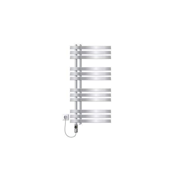 LuxeBath Elektrischer Badheizkörper Iron EM 500x1000mm Chrom mit Heizstab 300W Thermostat Digitalanzeige, Handtuchheizkörper mit Heizpatrone, Elektro Handtuchwärmer Paneelheizkörper Designheizkörper
