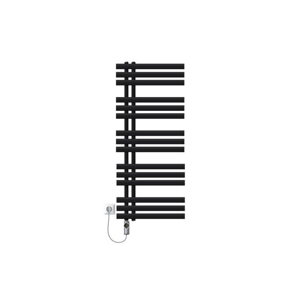 LuxeBath Elektrischer Badheizkörper IronEM 500x1200mm Schwarz matt inkl. Heizstab 1200W Chrom mit Thermostat Digitalanzeige, Handtuchheizkörper mit Heizpatrone, Elektro Handtuchwärmer Paneelheizkörper