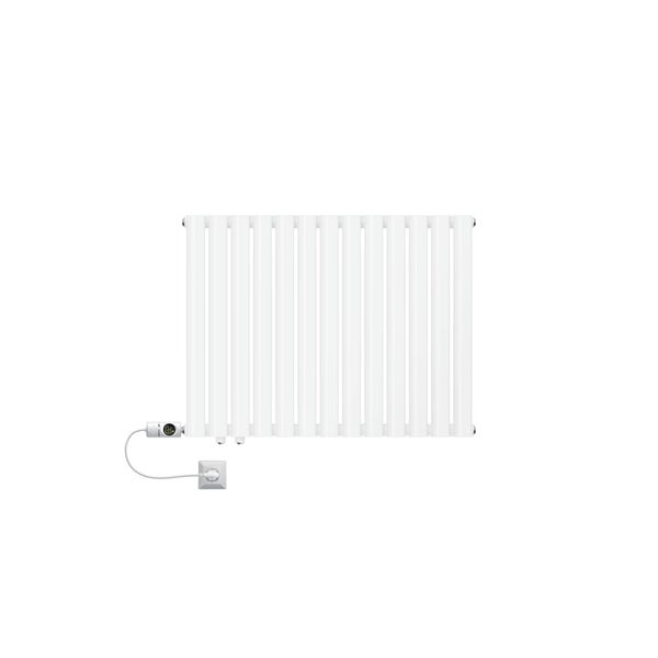 LuxeBath Elektrischer Paneelheizkörper 600 x 780 mm Weiß Doppellagig mit Heizstab 600W Digitalanzeige, Horizontaler Heizkörper mit ovale Röhren, Design Badheizkörper, Designheizkörper Röhrenheizkörper