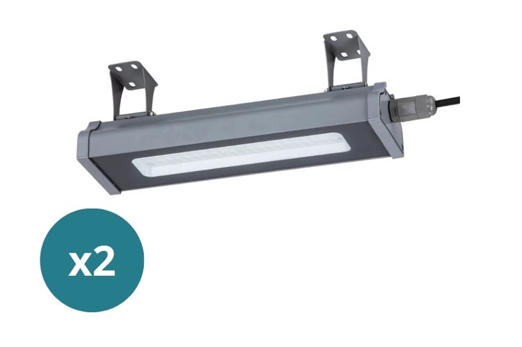 Jeder lineare Hallenstrahler verfügt über einen Quick Connector für eine einfache Installation. Die hohe Energieeffizienz und die Robustheit (IP65 und IK06) machen dieses Set zu einer zuverlässigen und langlebigen Wahl.