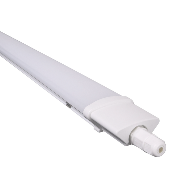 Die Leuchte besteht aus robustem Kunststoff in schlichtem Weiß und bietet mit 25.000 Stunden eine sehr lange Betriebsdauer. Diese Feuchtraumleuchte ist die perfekte Lösung für Kunden, die Wert auf eine sichere, zeitsparende und leistungsstarke Beleuchtung legen.