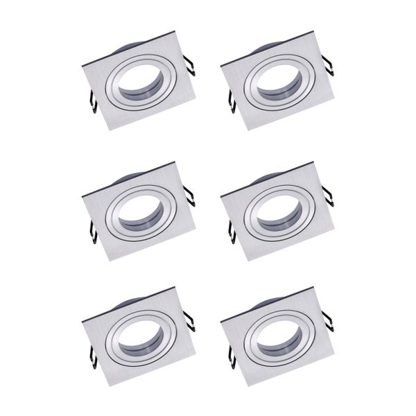 Lyon Einbauspot schwenkbar 6 Stück Alu gebürstet Deckenspots GU10 kompatibel flach 80 mm Lochmaß silber hochwertige Lichtlösungen
