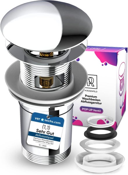 SPÜRBARE QUALITÄT und ein “Plopp” beim sanften Betätigen des spiegelglatt verchromten Pop Up Ventils. Tauschen Sie Ihren alten, klemmenden oder undichten Waschbecken Stöpsel aus.