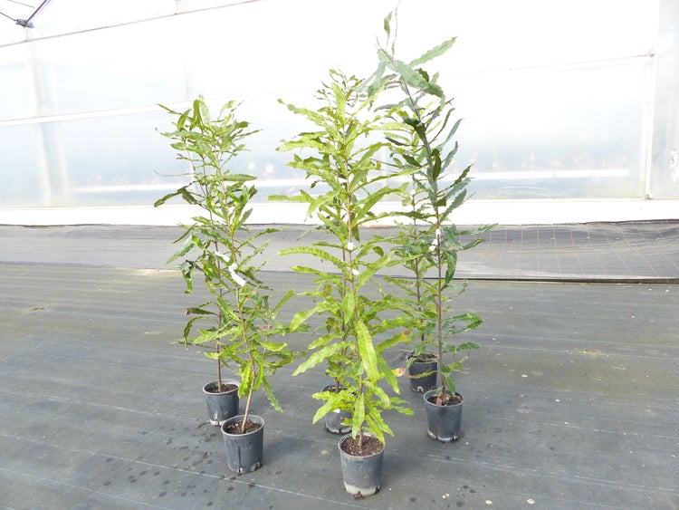 Macadamia ist eine Pflanze, der Familie der Silberbaumgewächse (Proteaceae). Die Macadamia-Nuss ist Wintergrüne Pflanze, die gerade wegen ihrer Früchte zunehmend beliebter wird. Die äußerst gesunde und wohlschmeckende Nuss wird nicht umsonst die „Königin der Nüsse“ genannt. Sie überzeugt mit ihrem buttrig-süßem Geschmack und zergeht quasi auf der Zunge. Der bis zu 6 Meter wachsende, selbstbefruchtende Baum bekommt im Frühsommer herrlich duftende 10-30cm lange, cremeweiße Blüten. Die robusten Pflanzen vertragen auch kühle Temperaturen und schmücken mittlerweile auch hierzulande gerne Wintergärten und lichtreiche Wohnräume.