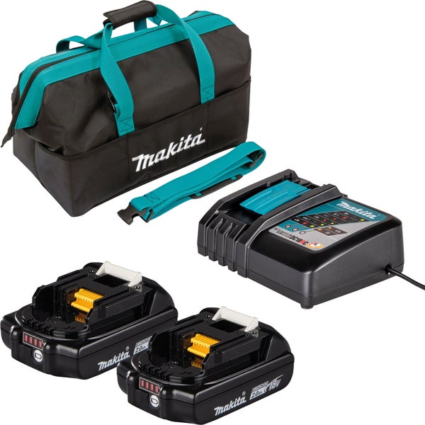 Akku BL1820B Der Energielieferant zum weltweit größten 18 V Li-Ion-Akku-Sortiment eines Herstellers Die LXT-Akkus liefern die Energie zu dem weltweit größten 18 V Li-Ion-Akku-Sortiment eines Herstellers. Das umfangreiche LXT-Sortiment umfasst Maschinen und Gartengeräte mit 18 V- sowie 2 x 18 V-Antrieb. Das stetig wachsende LXT-System bietet professionelles Werkzeug für jeden Job. Mit Ladestandanzeige, Ladezeit 24 min. mit Schnellladegerät. Schnellladegerät DC18RC Mit intelligenter Ladetechnologie und Kühlsystem für kurze Ladezeiten Das Schnellladegerät DC18RC (195584-2) ist für Akkus der LXT-Serie mit 14,4 V und 18 V geeignet. Dank eines Kühlsystems wird der Akku während des Ladevorgangs gekühlt, um eine schnelle Ladung zu erzielen und die Leistung zu verbessern. Nach einem erfolgreichen Ladevorgang ertönt optional eine Melodie, die angepasst werden kann. Transporttasche Transporttasche für den universellen Einsatz mit zwei Handschlaufen und Umhängegurt Besonders große Öffnung mit verstärktem Rand zum einfachen befüllen und entnehmen von Maschinen und Zubehör. Die Tasche wird mittels Reißverschluss verschlossen, der Boden ist verstärkt, sodass sich die Tasche beim Tragen nicht durchbiegt. Die acht innen und acht außen liegenden Seitentaschen versprechen eine optimale Ordnung. technische Daten Akku BL1820B Akkuspannung: 18 V Akkukapazität: 2,0 Ah Akkutyp: Li-ion Schnellladegerät DC18RC Akkuspannung: 14,4 / 18 V Ladezeit 1,3 Ah: 15 min Ladezeit 1,5 Ah: 22 min Ladezeit 2,0 Ah: 24 min Ladezeit 3,0 Ah: 22 min Ladezeit 4,0 Ah: 36 min Ladezeit 5,0 Ah: 45 min Ladezeit 6,0 Ah: 55 min Länge des Netzkabels: 2 m Akkutyp: Li-ion Transporttasche Abmessungen: 500 x 270 x 340 mm