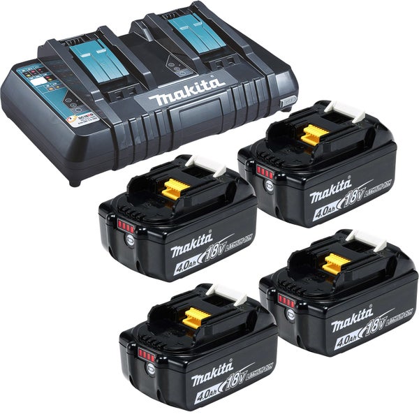 Makita 4x BL1840B Akku 4,0 Ah 18V Li-Ion + DC18RD Doppelschnellladegerät - DC18RD-BL1840-4x