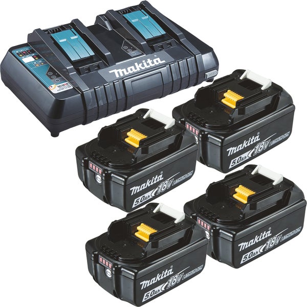 Makita 4x BL1850B Akku 5,0 Ah 18V Li-Ion + DC18RD Doppelschnellladegerät - DC18RD-BL1850-4x