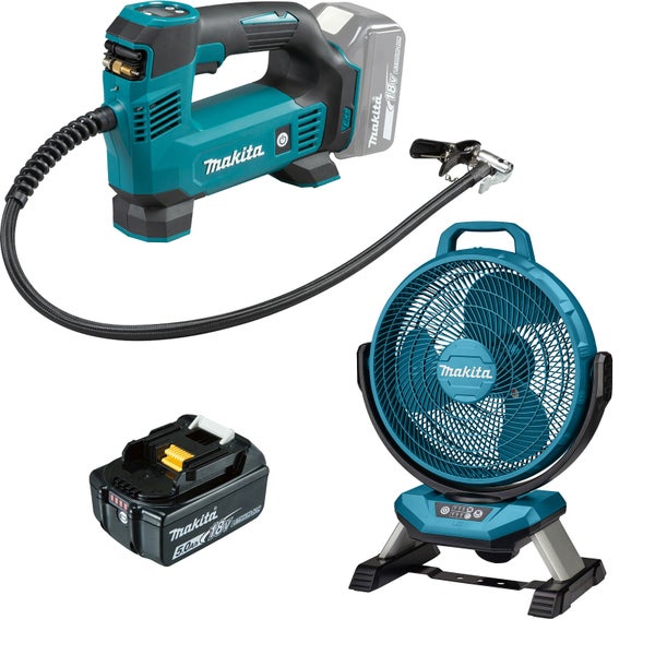 Makita DMP180T1 Akku-Kompressor 18V / 1x 5,0 Ah Akku + DCF301Z Akku-Lüfter