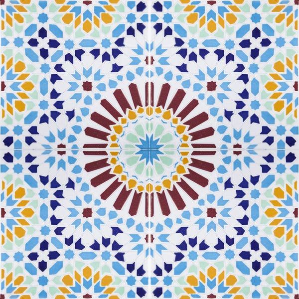 Verleihen Sie Ihrem Zuhause einen Hauch von Orient mit unseren dekorativen Keramikfliesen im Format 20x20 cm. Die dekorierten Fliesen zeichnen sich durch geometrische, orientalische Muster aus und bringen Farbe und Harmonie in jeden Raum. Die Fliesen sind Keramikfliesen (keine Aufkleber) und ausschließlich für den Innenbereich geeignet.