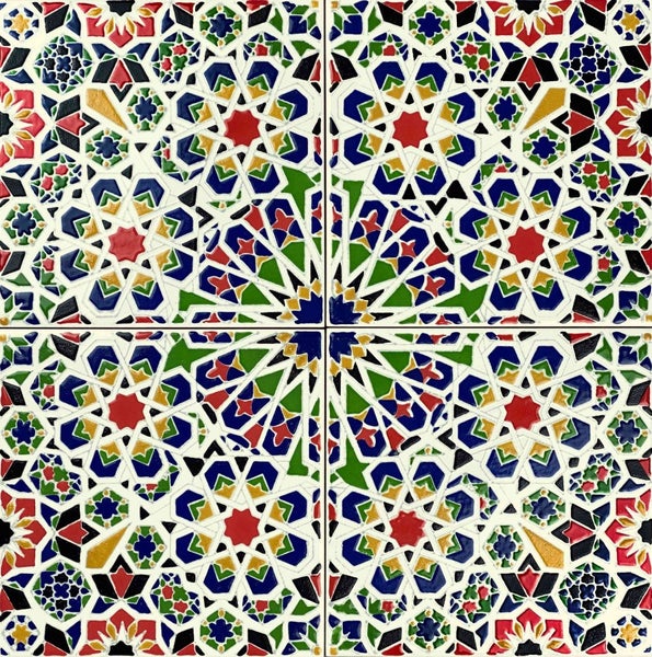 - Keramische Fliesen mit Designs, die auf Arabesken und marokkanischen Mustern basieren