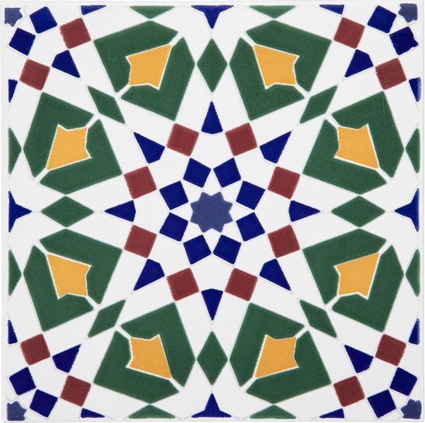 Verleihen Sie Ihrem Zuhause einen Hauch von Orient mit unseren dekorativen Keramikfliesen im Format 20x20 cm. Die dekorierten Fliesen zeichnen sich durch geometrische, orientalische Muster aus und bringen Farbe und Harmonie in jeden Raum. Die Fliesen sind Keramikfliesen (keine Aufkleber) und ausschließlich für den Innenbereich geeignet.