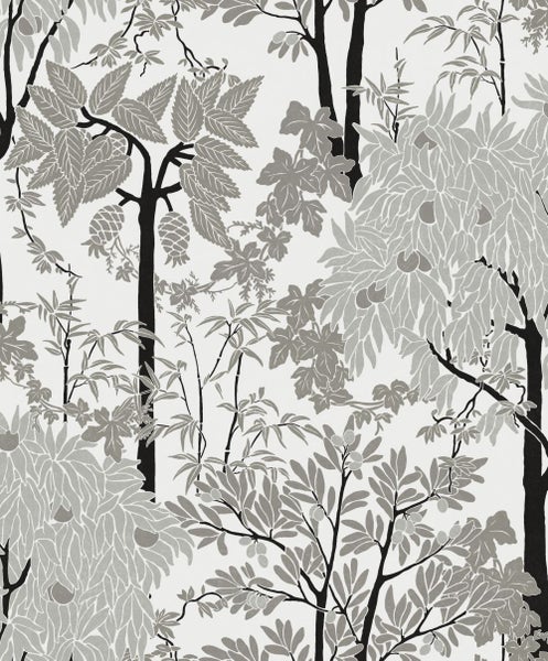 Die Schönheit der Natur zuhause genießen: Diese Tapete mit einer bewaldeten Landschaft in Grau verleiht jeder Wand eine natürliche Note und schafft eine ruhige, entspannte Atmosphäre.