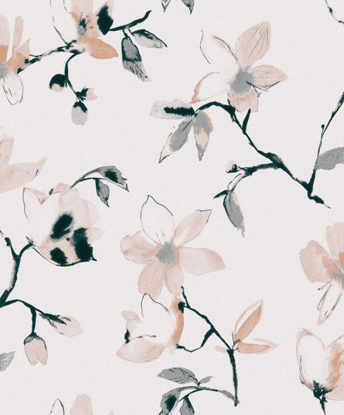 Diese schöne Tapete mit Blumen in Beige sorgt in jedem Wohnraum für eine warme, romantische Atmosphäre. Sie versprüht sogar einen Hauch Nostalgie und lässt an vergangene Zeiten erinnern.