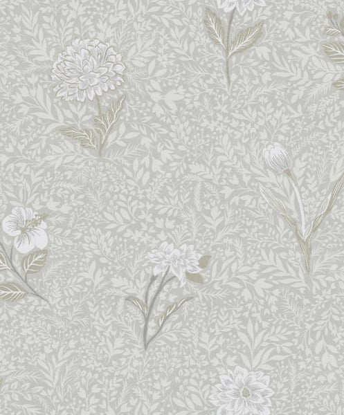 Diese schöne Tapete mit Blumen in Grau sorgt in jedem Wohnraum für eine warme, romantische Atmosphäre. Sie versprüht sogar einen Hauch Nostalgie und lässt an vergangene Zeiten erinnern.