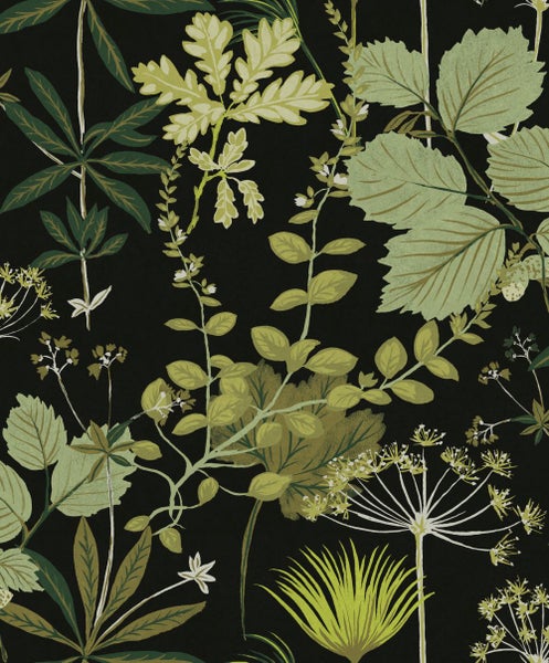 Diese schöne Tapete mit Blumen in Grün und Schwarz sorgt in jedem Wohnraum für eine warme, romantische Atmosphäre. Sie versprüht sogar einen Hauch Nostalgie und lässt an vergangene Zeiten erinnern.