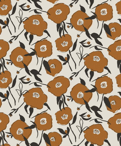 Diese schöne Tapete mit Blumen in Terrakotta sorgt in jedem Wohnraum für eine warme, romantische Atmosphäre. Sie versprüht sogar einen Hauch Nostalgie und lässt an vergangene Zeiten erinnern.