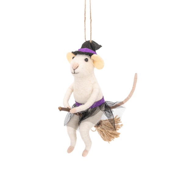 Maus auf Besen Filz Weihnachthänger - Sass & Belle