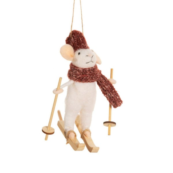 Die Hängedekoration verleiht Ihrer Weihnachtsdekoration mit Sicherheit einen Hauch von Spaß und Verspieltheit. Dieses Ornament stellt eine Maus auf Skiern dar und wurde mit viel Liebe zum Detail gefertigt, was es zu einer schönen Ergänzung für jeden Baum oder jede Girlande macht.