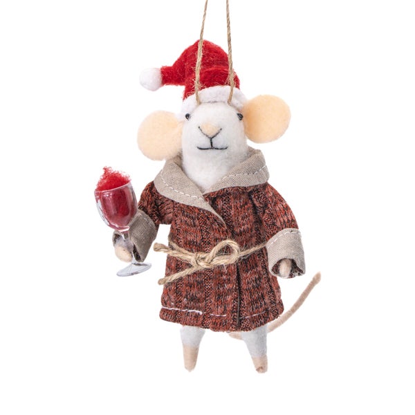 Maus mit Getränk Filz Weihnachthänger - Sass & Belle
