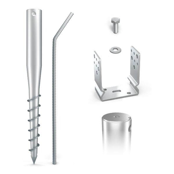 - Im Lieferumfang enthalten3 x 100 cm Core Schraubfundament; 1 x Eindrehstange 58 cm; 3 x 7 cm U-Winkel (feuerverzinkt); 3 x Schraube M12x30; 3 x U-Scheibe D13