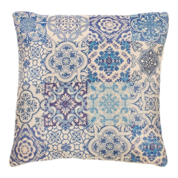 Entdecken Sie das mediterrane Gefühl mit dieser wunderschönen Mediterranes Dekokissen blauer Fliese aus der Sass & Belle-Kollektion.