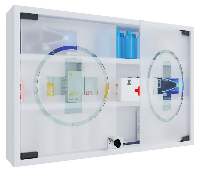 Der Medizinschrank Hustila wurde vom Designer bewusst sehr schlicht gestaltet, welcher durch die Glastüren dennoch chic aussieht.