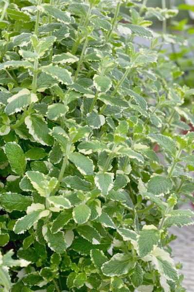 Mentha suaveolens ‘Variegata’, bekannt als Ananas-Minze oder panaschierte Apfelminze, ist eine aromatische Gartenstaude mit dekorativem, zweifarbigem Laub und feinem Fruchtduft. Die grün-weiß gerandeten, leicht gekräuselten Blätter verleihen dieser Kräuterpflanze einen besonderen Zierwert, während die zarten, weißlich bis roséfarbenen Blütenähren von Juli bis September für sommerliche Leichtigkeit sorgen. Der Wuchs ist buschig-aufrecht mit lockerer Horstbildung und sanfter Ausläuferneigung, erreicht je nach Standort etwa 40 bis 60 cm Höhe und eignet sich damit hervorragend als Duftstaude für das Kräuterbeet, den Bauerngarten und den naturnahen Gartenbereich. Als Kübelpflanze auf Terrasse oder Balkon zeigt sich die Ananas-Minze äußerst dekorativ, kann als Solitär im Kräutertopf glänzen oder in Gruppenpflanzung zwischen Stauden und Beetpflanzen frische Akzente setzen. Sie liebt einen sonnigen bis halbschattigen Standort mit humosem, nährstoffreichem, gleichmäßig frischem bis leicht feuchtem, gut durchlässigem Boden. Regelmäßiges Gießen ohne Staunässe unterstützt das gleichmäßige Wachstum, ein Rückschnitt nach der Blüte oder ein wiederholter Formschnitt fördert einen dichten, kompakten Aufbau und frischen Neuaustrieb. Im Beet empfiehlt sich bei ausläuferfreundlichen Verhältnissen eine Wurzelsperre, im Kübel ist eine hochwertige Kräutererde ideal. Die robuste, winterharte Gewürzstaude ist vielseitig in der Küche einsetzbar, etwa für erfrischende Tees, Desserts und aromatisierte Getränke, und bereichert Vorgarten, Kräuterbeet und Terrassengestaltung gleichermaßen mit Duft, Struktur und edler Panaschierung.
