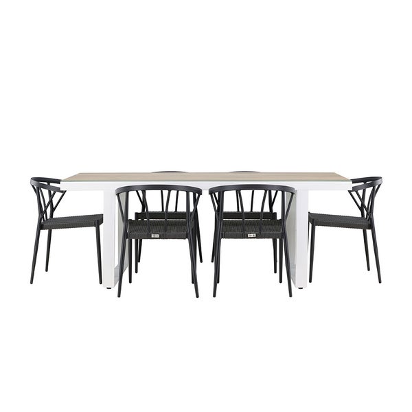MerloStina Gartenset 1 Esstisch, 6 Stühle weiß. 90 X 200 X 75 cm