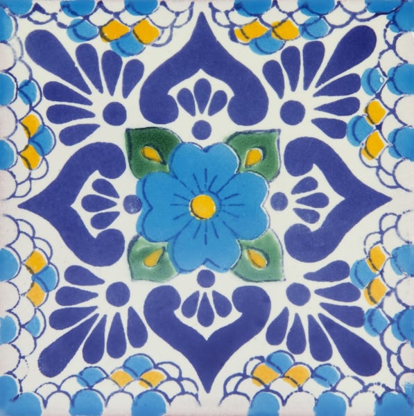 Mexikanische Mosaik Fliesen Azul – Handgefertigte Keramikmosaik, 30 Wandfliesen desselben Designs, Eine Keramik fliese hat die Maße 10,5x10,5 cm