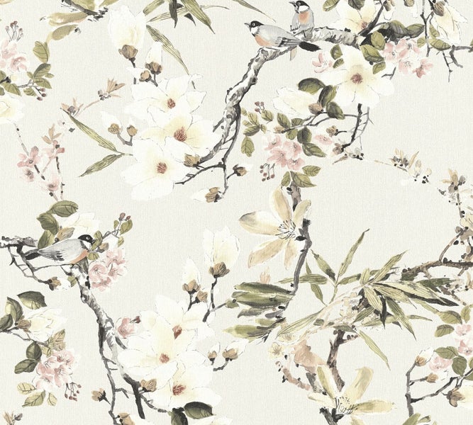 Michalsky Living Tapete Blumenmuster Beige, Grün, Grau und Rosa 53 cm x 10.05 m