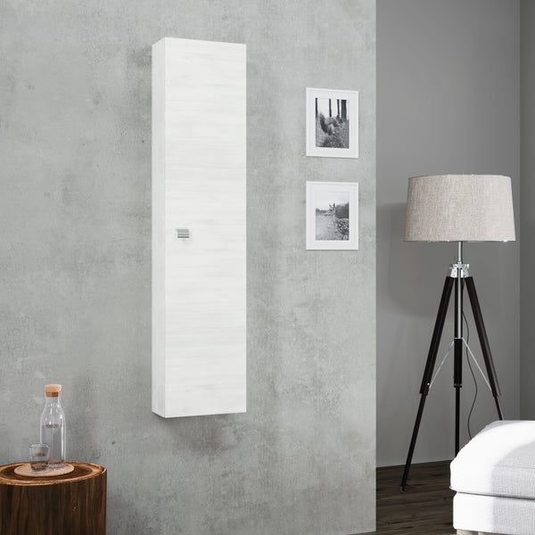 Der weiße Hängeschrank in Holzoptik Weiß ist die ideale Ergänzung für Ihr Badezimmer.