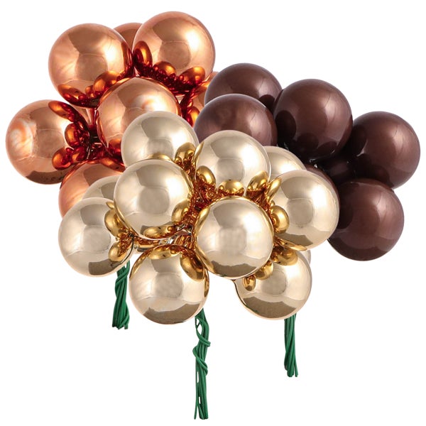 Mini-Weihnachtskugeln am Draht – Glanz für Ihr Fest Erleben Sie den Zauber der Weihnachtszeit mit diesen schimmernden Mini-Weihnachtskugeln aus Glas. Perfekt am grünen Draht befestigt, bringen sie mühelos festlichen Glanz in Ihr Zuhause. Eigenschaften und Vorteile: Hochwertige Glaskugeln am Draht – sofort einsatzbereit Festliche Farben: Braun, Gold und Apricot Ideal für Weihnachtsbaum, Adventskranz und Tischdeko Eleganter, klassischer Weihnachtsschmuck für Ihr Landhaus Kreative Dekorationsideen: Verleihen Sie Ihrem Weihnachtsbaum mit diesen Mini-Kugeln einen magischen Touch oder schmücken Sie Ihren Adventskranz. Auch als festliche Tischdekoration sind sie ein echter Hingucker! Diese Mini-Spiegelbeeren sind perfekt für kreative DIY-Projekte und einzigartige Geschenkideen. Mit einem warmen Mix aus Braun, Gold und Apricot zaubern diese Glaskugeln im Handumdrehen eine festliche Atmosphäre und passen sowohl zur nostalgischen als auch zur modernen Weihnachtsdeko. Ideal für alle, die Wert auf stilvolle und vielseitige Dekoration legen. Bitte beachten Sie: Auf Produktbildern gezeigte Deko-Artikel und Zubehör sind nicht in der Lieferung inbegriffen. Durchmesser: ca. Ø25mm Länge mit Draht: ca. 11cm Farbe: Gold, Braun, Apricot Material: Glas, Metall Menge: 140 Stück, gemischt Anb.Nr.: 24634-1 EAN: 4022949246345
