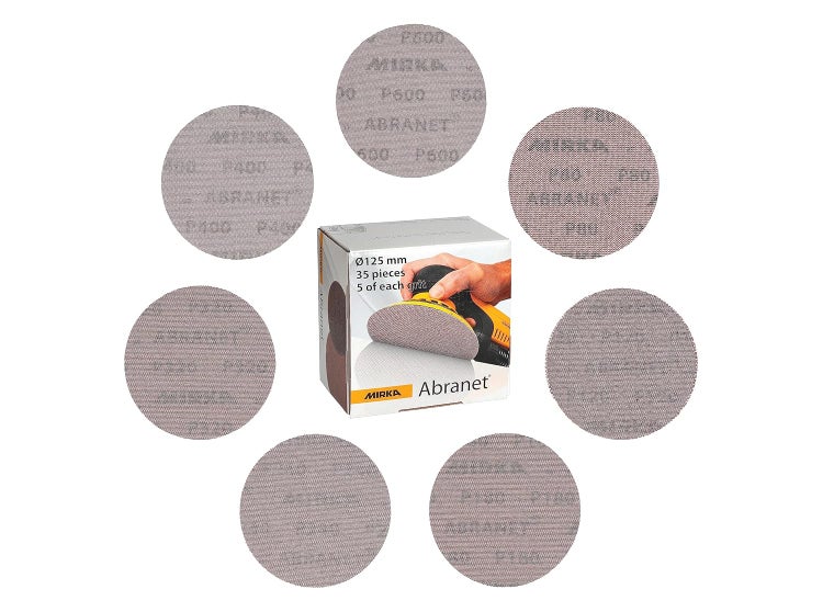 Mirka Abranet Netzschleifscheiben Ø 125 mm Klett / Mix-Pack 5 von jeder Körnung 80, 120, 180, 240, 320, 400, 600 / 35 Stk / Für alle 125mm Exzenterschleifer und Schleifmaschinen