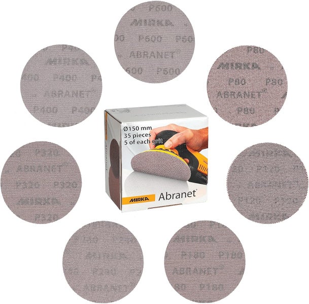 Mirka Abranet Netzschleifscheiben Ø 150mm Klett / Mix-Pack 5 von jeder Körnung 80, 120, 180, 240, 320, 400, 600 / 35 Stk / Für alle 150mm Exzenterschleifer und Schleifmaschinen