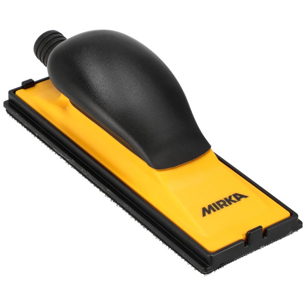 Handblock Kit 70 x 198 mm Ein vielseitiges Werkzeug, das für das Schleifen auf konkaven, konvexen und flachen Oberflächen konzipiert wurde, dank spezieller Platten, die an einem Handblockkörper befestigt sind. Der Austausch der verschiedenen Platten ist schnell und einfach. Dieses Kit enthält einen Handblockkörper 70 x 198 mm, einen Schlauchadapter mit einem Außendurchmesser von Ø 20/28 mm und 4 austauschbare Platten (konvex mit R = 160 mm, konkav mit R = 52 mm, konkav mit R = 100 mm und flach). Mirka® Hand-Schleifblöcke sind speziell für das Handschleifen in Kombination mit Mirka's revolutionären Netz-Schleifprodukten entwickelt, können jedoch auch mit anderen Schleifmitteln verwendet werden. Um staubfreies Schleifen zu gewährleisten, muss der Hand-Schleifblock einfach über einen Schlauch an ein Staubabsaugsystem angeschlossen werden.
