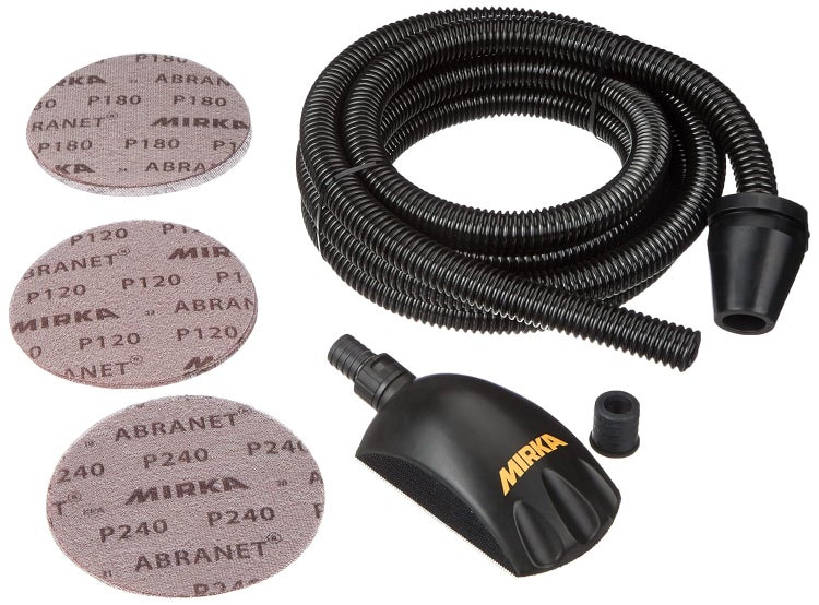 Mirka Roundy Kit Handblock mit Absaugung / Schleifklotz mit Klett inkl. 4m Absaugschlauch & 15 Stück Mirka Abranet Netzschleifscheiben Klett Ø 150mm Korn P120 P180 P240 / KIT00ROUND