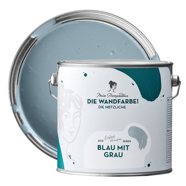 MissPompadour abwaschbare Wandfarbe 2.5L Blau mit Grau - hohe Deckkraft und Ergiebigkeit - matte, scheuerbeständige Innenfarbe - geruchsarm, wasserbasiert, atmungsaktiv - Die Nützliche