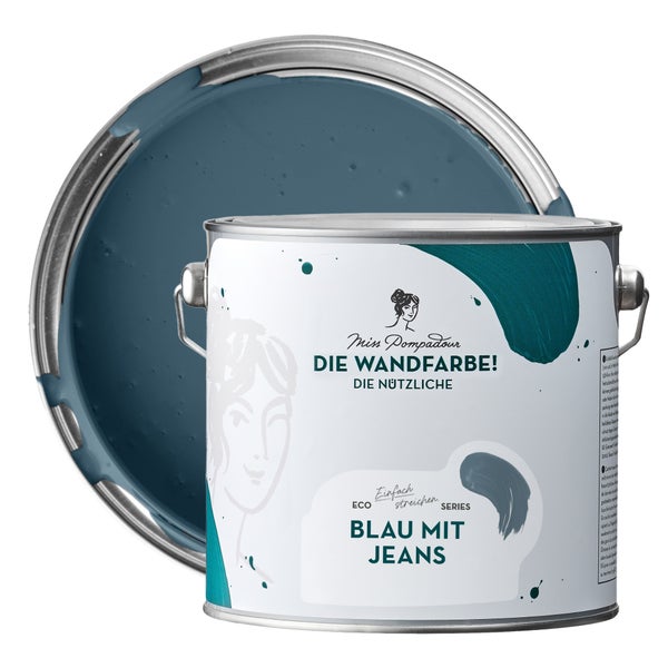 MissPompadour abwaschbare Wandfarbe 2.5L Blau mit Jeans - hohe Deckkraft und Ergiebigkeit - matte, scheuerbeständige Innenfarbe - geruchsarm, wasserbasiert, atmungsaktiv - Die Nützliche