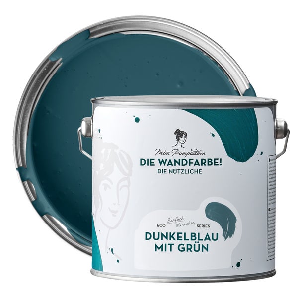 MissPompadour abwaschbare Wandfarbe 2.5L Dunkelblau mit Grün - hohe Deckkraft und Ergiebigkeit - matte, scheuerbeständige Innenfarbe - geruchsarm, wasserbasiert, atmungsaktiv - Die Nützliche