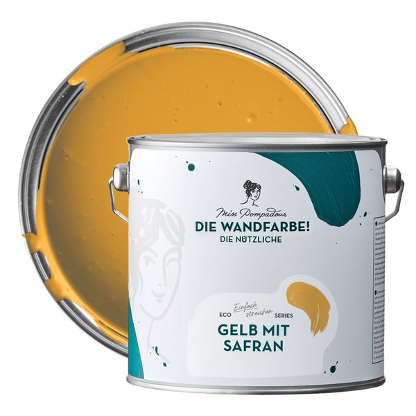 MissPompadour abwaschbare Wandfarbe 2.5L Gelb mit Safran - hohe Deckkraft und Ergiebigkeit - matte, scheuerbeständige Innenfarbe - geruchsarm, wasserbasiert, atmungsaktiv - Die Nützliche