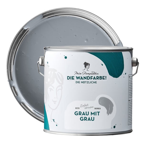 MissPompadour abwaschbare Wandfarbe 2.5L Grau mit Grau - hohe Deckkraft und Ergiebigkeit - matte, scheuerbeständige Innenfarbe - geruchsarm, wasserbasiert, atmungsaktiv - Die Nützliche