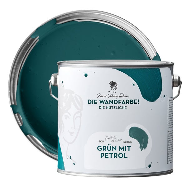 MissPompadour abwaschbare Wandfarbe 2.5L Grün mit Petrol - hohe Deckkraft und Ergiebigkeit - matte, scheuerbeständige Innenfarbe - geruchsarm, wasserbasiert, atmungsaktiv - Die Nützliche
