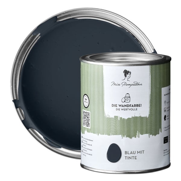 MissPompadour extramatte Wandfarbe 1L Blau mit Tinte - sehr hohe Deckkraft - geruchsneutrale, spritzfreie Farbe - atmungsaktive, wasserbasierte Innenfarbe/Deckenfarbe - Die Wertvolle