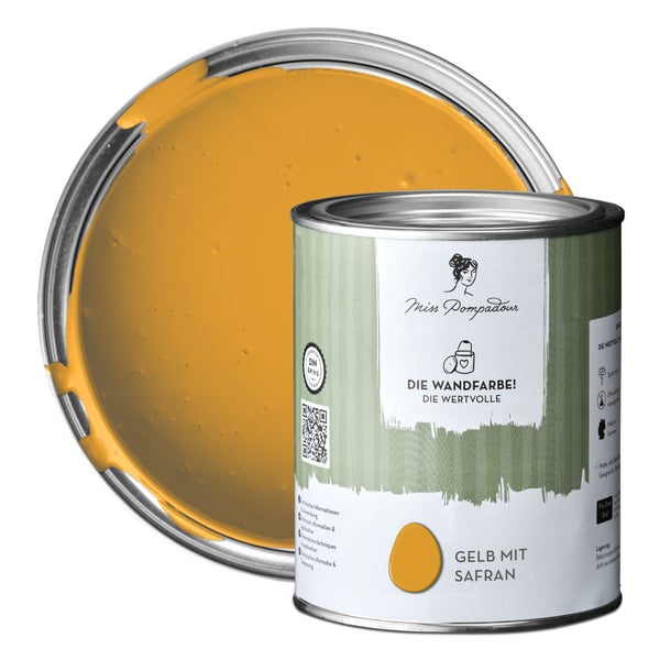 MissPompadour extramatte Wandfarbe 1L Gelb mit Safran - sehr hohe Deckkraft - geruchsneutrale, spritzfreie Farbe - atmungsaktive, wasserbasierte Innenfarbe/Deckenfarbe - Die Wertvolle