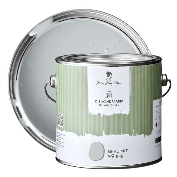 MissPompadour extramatte Wandfarbe 2.5L Grau mit Wärme - sehr hohe Deckkraft - geruchsneutrale, spritzfreie Farbe - atmungsaktive, wasserbasierte Innenfarbe/Deckenfarbe - Die Wertvolle