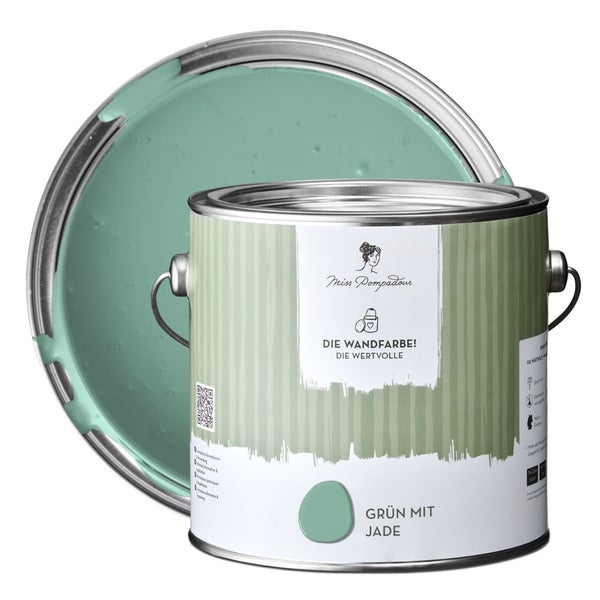 MissPompadour extramatte Wandfarbe 2.5L Grün mit Jade - sehr hohe Deckkraft - geruchsneutrale, spritzfreie Farbe - atmungsaktive, wasserbasierte Innenfarbe/Deckenfarbe - Die Wertvolle