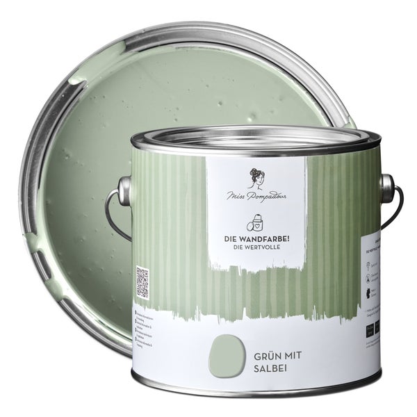 MissPompadour extramatte Wandfarbe 2.5L Grün mit Salbei - sehr hohe Deckkraft - geruchsneutrale, spritzfreie Farbe - atmungsaktive, wasserbasierte Innenfarbe/Deckenfarbe - Die Wertvolle